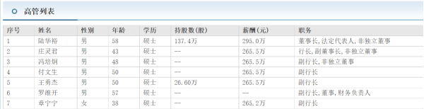 从宁波银行高管资料表可以看出,如今的宁波银行可不止付文生一人在同一职位上干了十年。该行董事长陆华裕已经上任11年了。