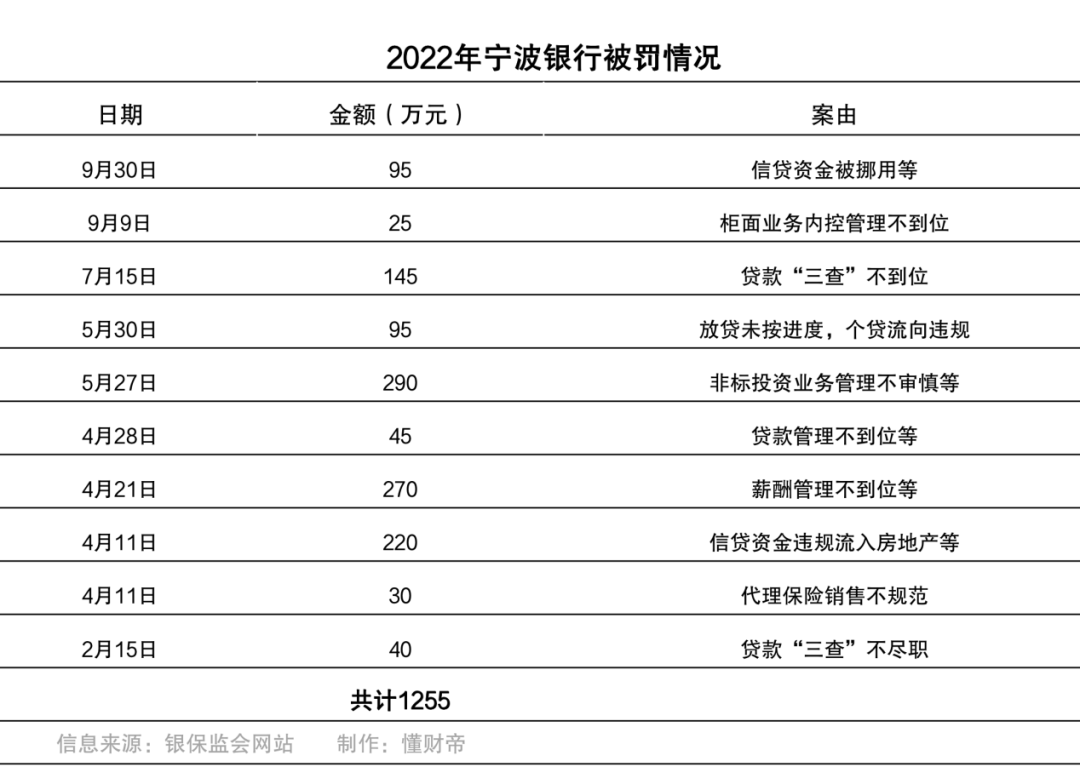 不过野蛮扩张也引来了监管难题,宁波银行合规经营环节薄弱,从今年收到超千万元罚单,可见一斑。