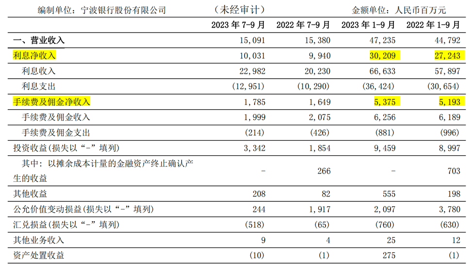 除了净利息收入外,宁波银行的手续费收入表现也格外亮眼,前三季度其手续费及佣金净收入达53.75亿元,同比增长3.5%。