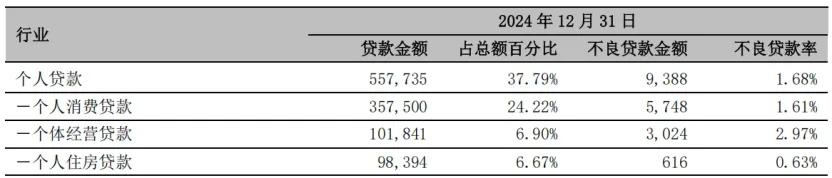 2024年时,宁波银行房地产业对公贷款1420亿元,占比9.62%,对公业务中仅低于租赁与制造业。个人房贷也表现不错,放贷量984亿元,占比6.67%。