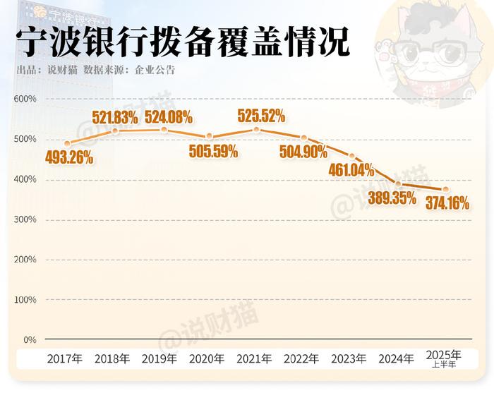 但进入2023年后,宁波银行拨备覆盖率就进入了快速下降状态。