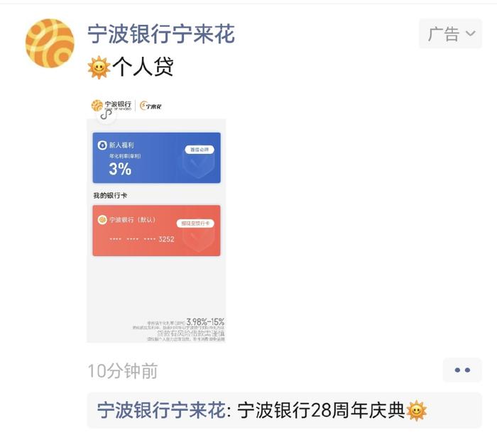 猫姐至今还时不时,在微信朋友圈刷到宁波银行宁来花的广告。