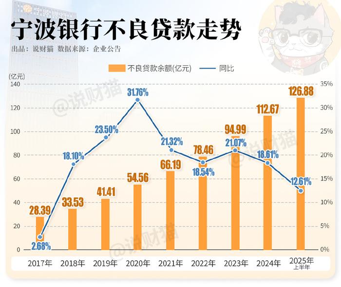 截至6月底,宁波银行不良贷款余额,已经达到126.88亿。