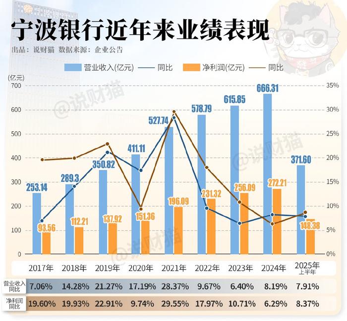 今年上半年,宁波银行实现营收371.60亿,同比增长7.91%;
