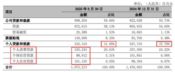 受此影响,个人贷款和垫款占公司贷款总金额的比重,也从去年底的37.79%,降到了31.99%。