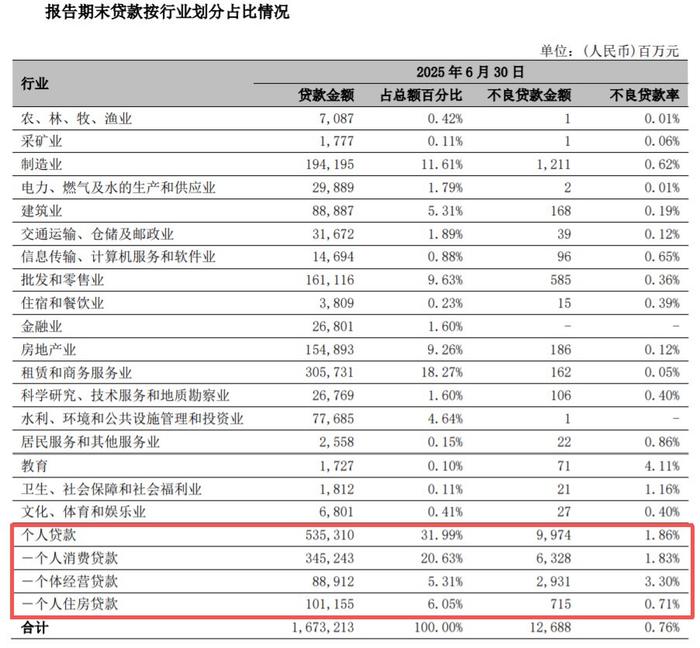 虽然整体的不良率只有0.76%,但宁波银行个贷的不良率却高达1.86%。