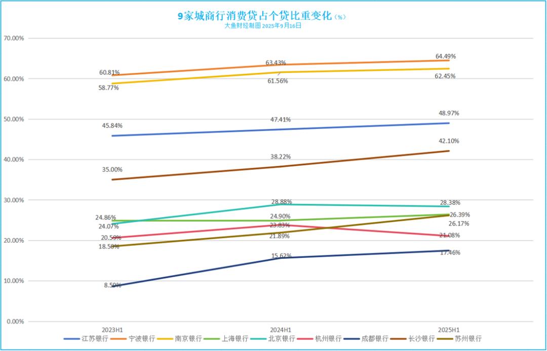 近日,新黄河·大鱼财经统计了10家A股上市城商行的个贷、消费贷等数据,对比了10家城商行个贷以及消费贷业务情况。