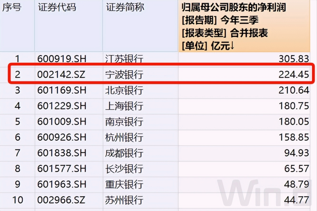 2025年前三季度, 宁波银行 实现净利润224亿元,高居第二,仅仅低于 江苏银行 (306亿元),超过 北京银行 、 上海银行 、 南京银行 等同行。