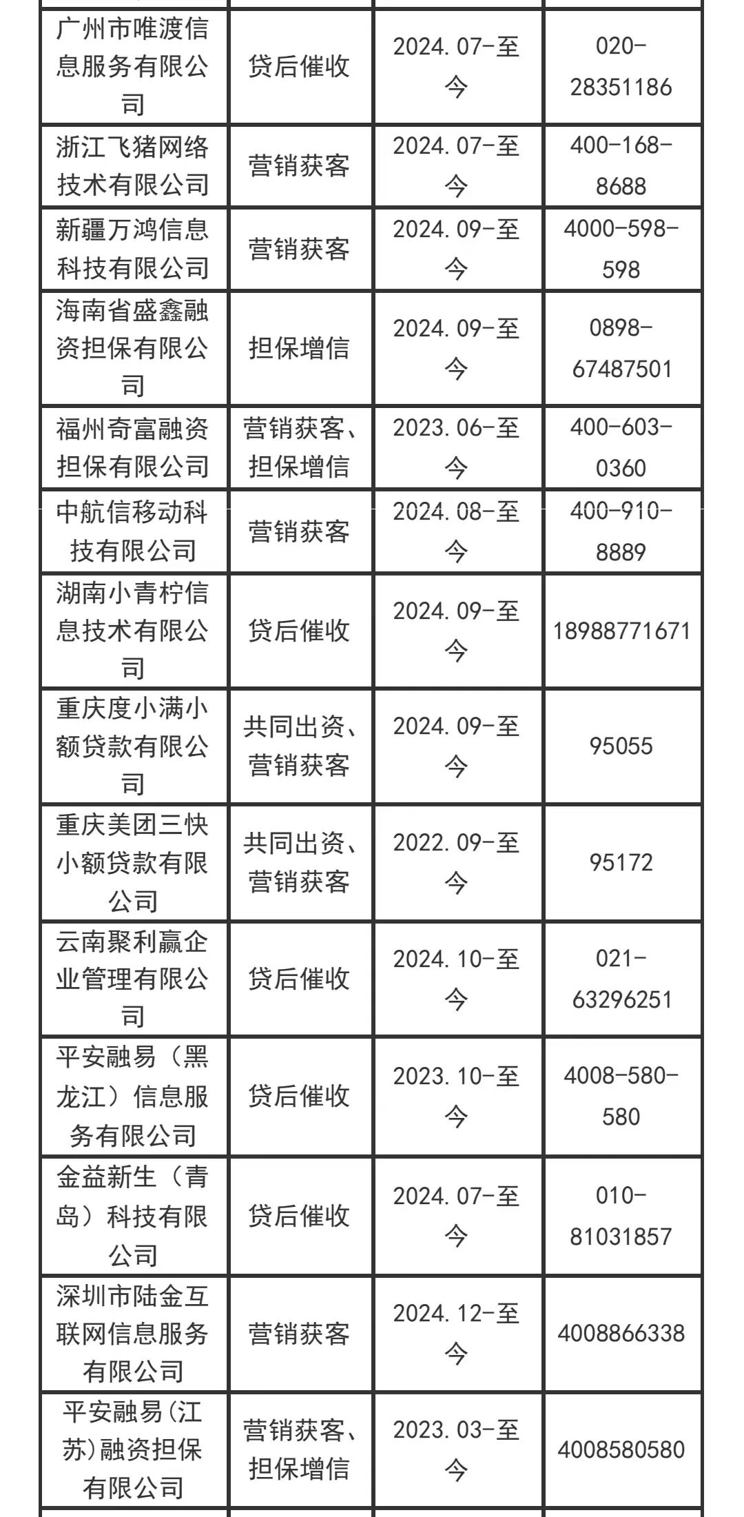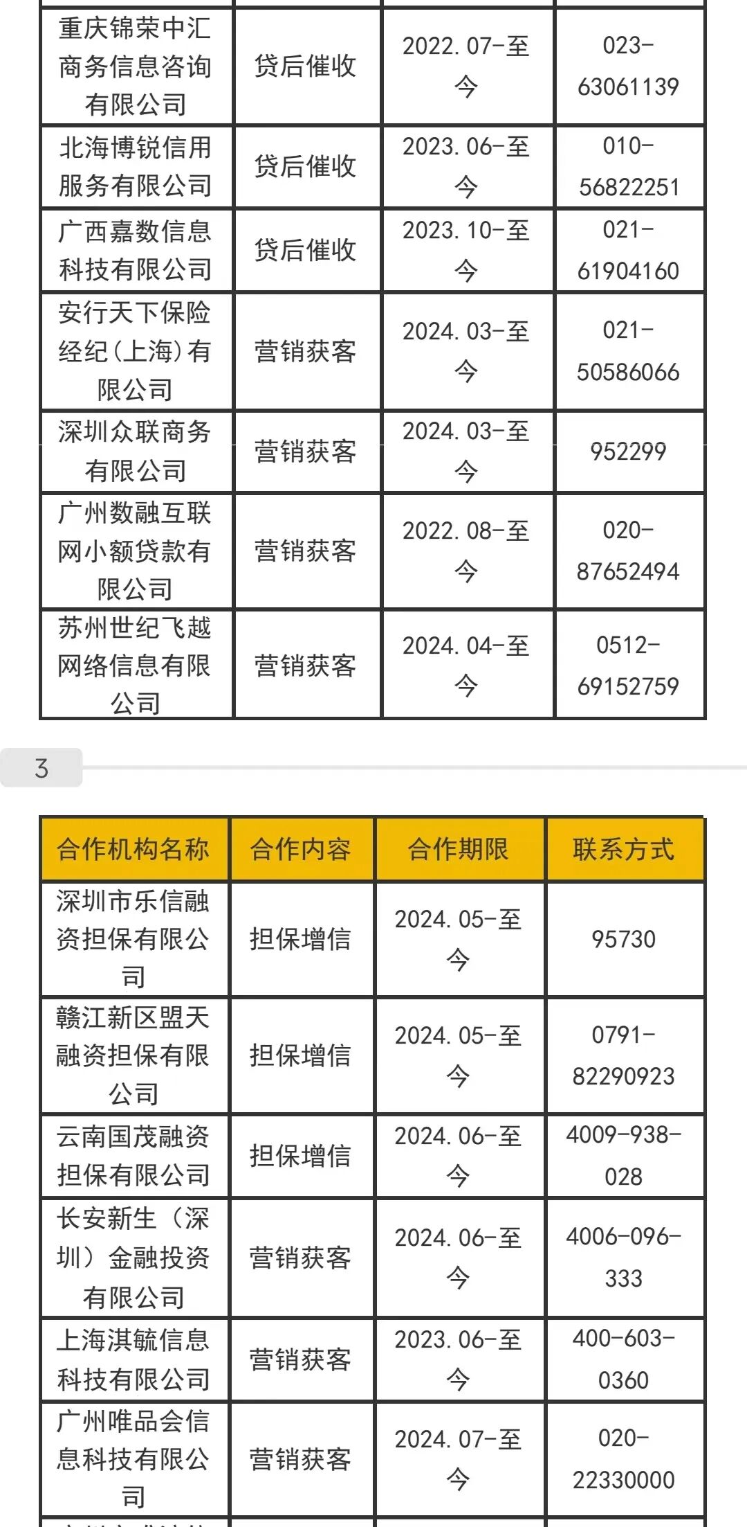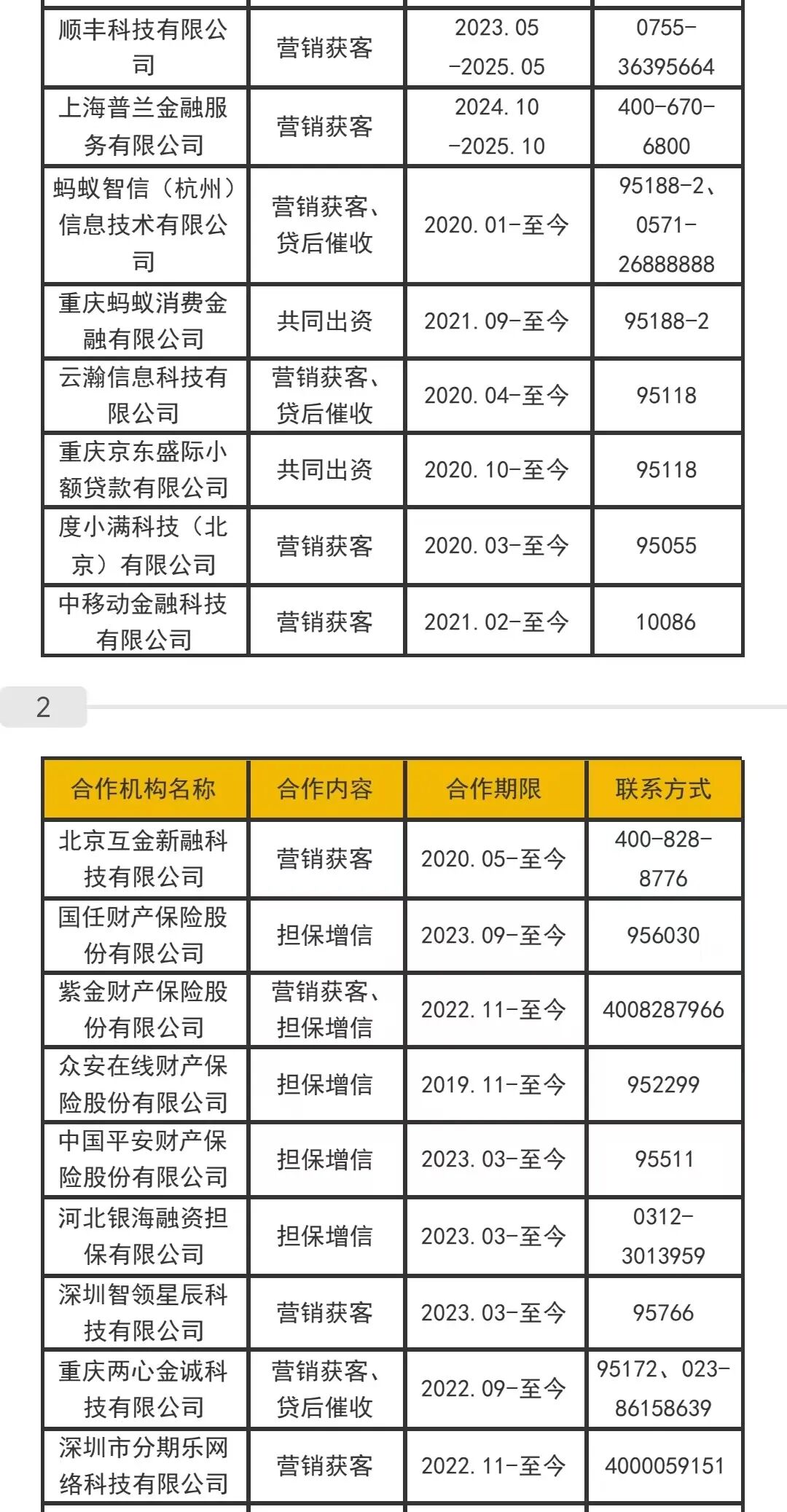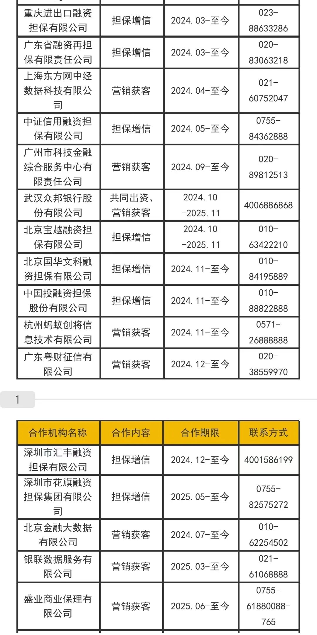 其中,共同出资合作机构9家,分别为: 网商银行 、 众邦银行 、 蚂蚁消金 、盛际小贷( 京东 旗下)、 财付通小贷 (腾讯旗下)、 微众银行 、中融小贷( 字节跳动 旗下)、 度小满小贷 、三快小贷( 美团 旗下)。