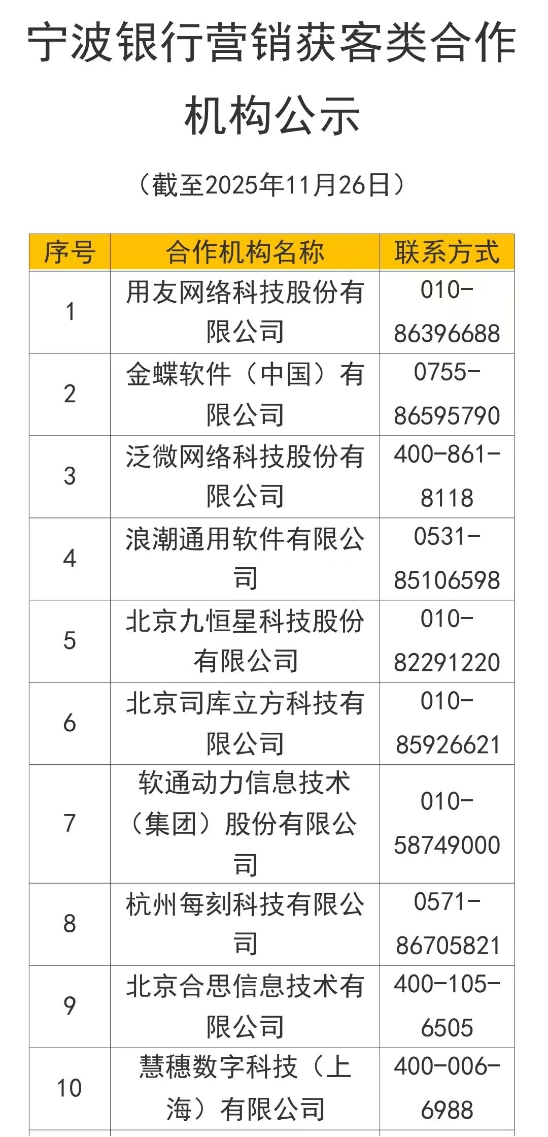 另外, 宁波银行 披露的营销获客类合作机构名单显示,截至2025年11月26日,该行营销获客类合作机构共369家。