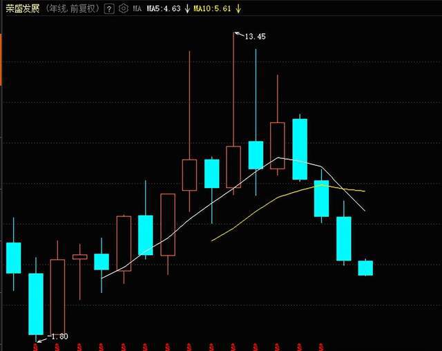 然而,从2020年开始,荣盛发展开始了漫漫熊途,股价一路下行,目前已跌至1.5元以下,相比昔日高点累计跌幅超过88%,总市值蒸发超400亿元。