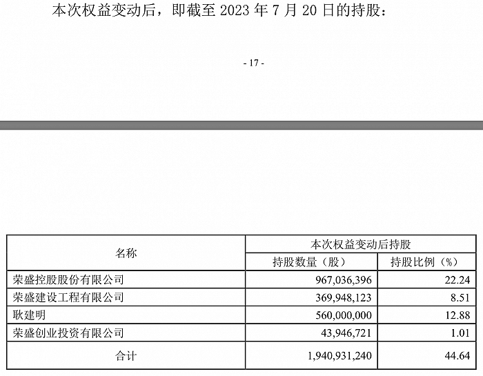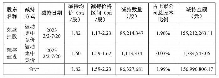 而随着股价有起色,股东也开始减持。7月22日的公告,控股股东荣盛控股及其一致行动人荣盛建设工程有限公司(下称荣盛建设)的函告,获悉荣盛控股、荣盛建设于近日合计减持股份已超过公司总股本的1%。