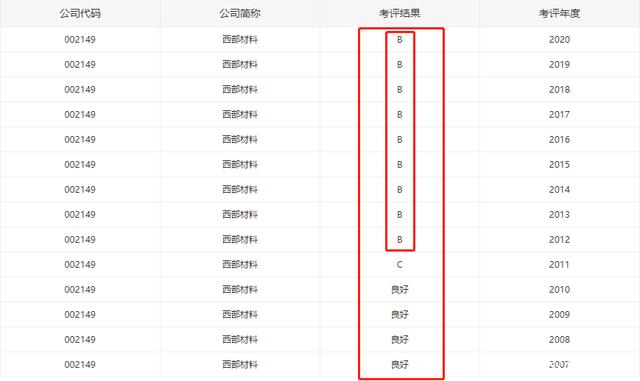 据投研电讯信披质量研究院统计,自2007年8月10日在深交所主板上市,西部材料在深交所14次年度信息披露考评中13次为B(良好)、1次为C,从未获A。值得注意的是,自2012年至今,西部材料在深交所信息披露考评中已连续9年被评为B。