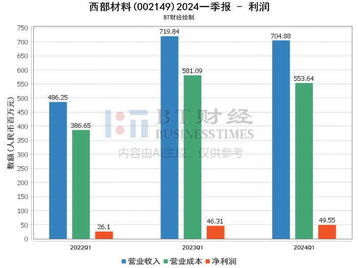 西部金属材料股份有限公司(股票代码:002149),简称西部材料,是中国领先的金属材料制造企业,主要从事钛及钛合金、镍及镍合金等高性能金属材料的研发、生产和销售。公司致力于为航空航天、石油化工、医疗器械等高端制造领域提供优质的金属材料解决方案。2024年第一季度,西部材料发布了最新的财务报告,本文将对其财务数据进行详细分析。