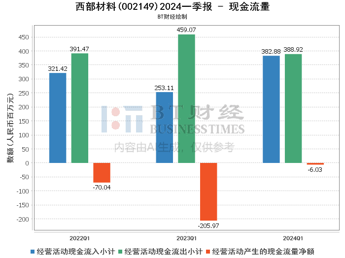 综上所述,西部材料在2024年一季度的财务表现总体较为稳健。尽管营业收入略有下降,但公司通过有效的成本控制和运营效率提升,实现了净利润的增长。同时,经营活动现金流量显著改善,显示出公司在现金流管理方面的成效。然而,负债管理方面的压力有所增加,未来需要继续关注负债结构的优化和筹资活动的合理安排。