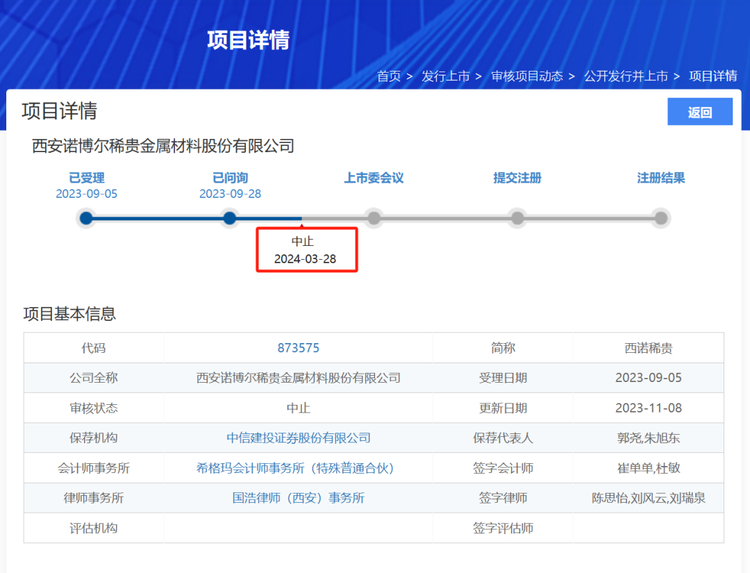 2024年3月28日,一年一度的企业年报披露季在即,和大多数正在审核中的拟上市企业一样,因之前上市申请中提交的财务信息的有效期将至,西诺稀贵因需要补充2023年全年的相关财务数据而进入“中止”状态。