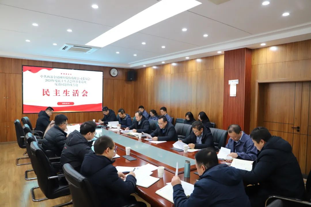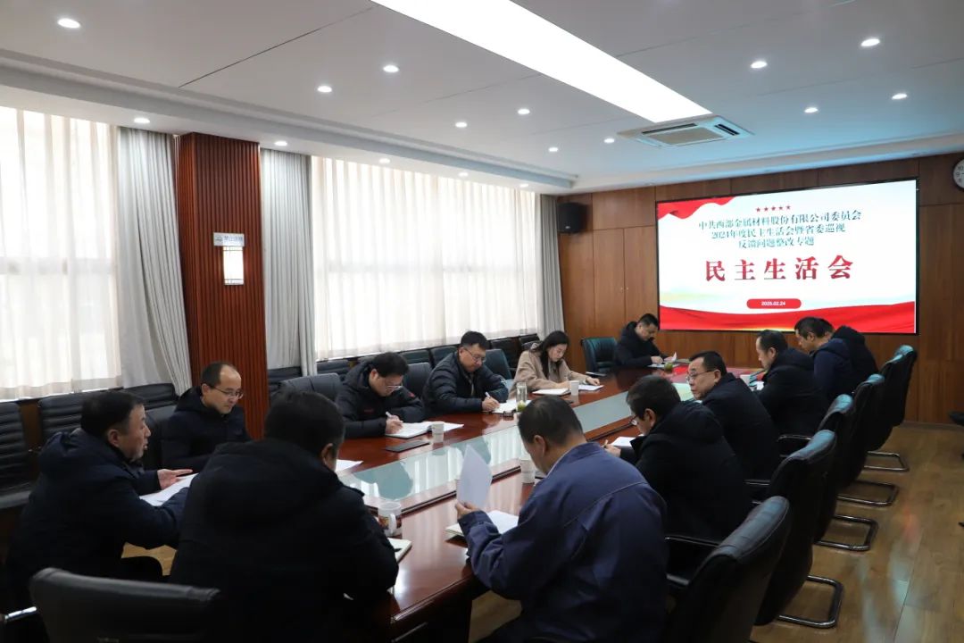 2月24日,按照西北有色金属研究院党委部署要求,西部材料公司党委召开2024年度民主生活会,会议以“深入学习贯彻习近平新时代中国特色社会主义思想,围绕巩固深化党纪学习教育成果,综合发挥党的纪律教育约束、保障激励作用”为主题,结合省委政治巡视反馈问题,深刻进行自我检视和党性分析,严肃开展批评和自我批评。院党委委员、副院长梁书锦率督导组到会督导并作点评讲话,公司党委书记杨延安主持会议。