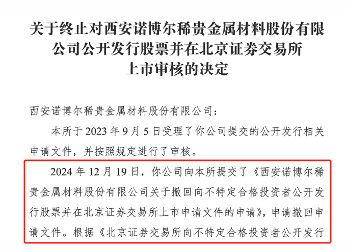 2024年12月19日,在上市审核的关键阶段,该公司突然向北交所提交了撤回上市申请文件的申请。次年2月7日,北交所正式发出终止审核决定,宣告了西诺稀贵长达数月的IPO努力以失败告终。