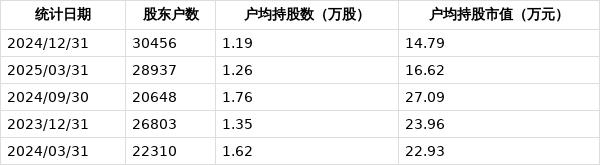 从4月22日公开信息显示,通润装备截至2024年12月31日公司股东户数为3.05万户,较上期(2025年3月31日)增加9808户,增幅为47.50%,持股趋于分散。