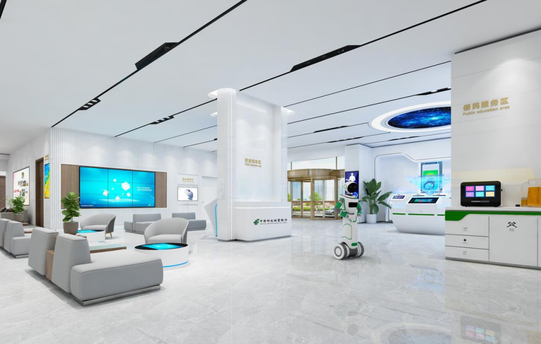 本次山西邮储智能网点建设,广电运通紧贴客户需求,立足网点业务特点,融合5G、人工智能、大数据、生物识别等前沿技术,按照“可实现、有前瞻、重亮点”的思路重新整合网点功能分区,主要包括“智慧运营基础功能”和“主题特色服务功能”两大功能分区升级。其中,“智慧运营基础功能”主要通过对基础业务进行流程优化和重组,精简冗余环节,构建了全新的预约服务模式和极简的到店服务流程;“主题特色服务功能”则主要围绕“民生和社保、互联网应用”两大主题,为客户提供了一站式专业化综合金融服务;让用户获得更为安全、便捷、智能、贴心的多维度服务体验。