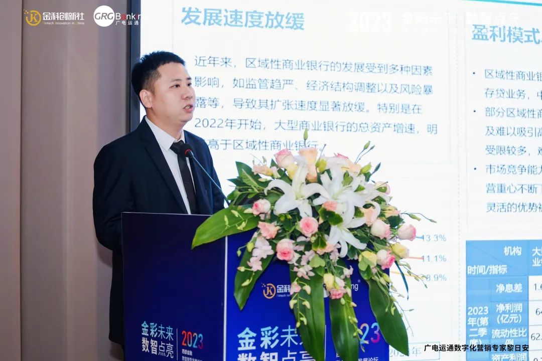 广电运通智能金融研究院总监余友波则分享了对金融数字化转型的理解,从以人为本、业务创新、数据赋能、技术引领4个方向介绍数字化转型如何向深水区迈进,通过业务、数据和技术的深度融合,帮助银行实现业务创新发展、管理高效精细、员工减负提能、客户卓越体验等目标,近年来,广电运通在金融数字化的业务布局更加完善,预计明年还将推出更多重量级的产品。