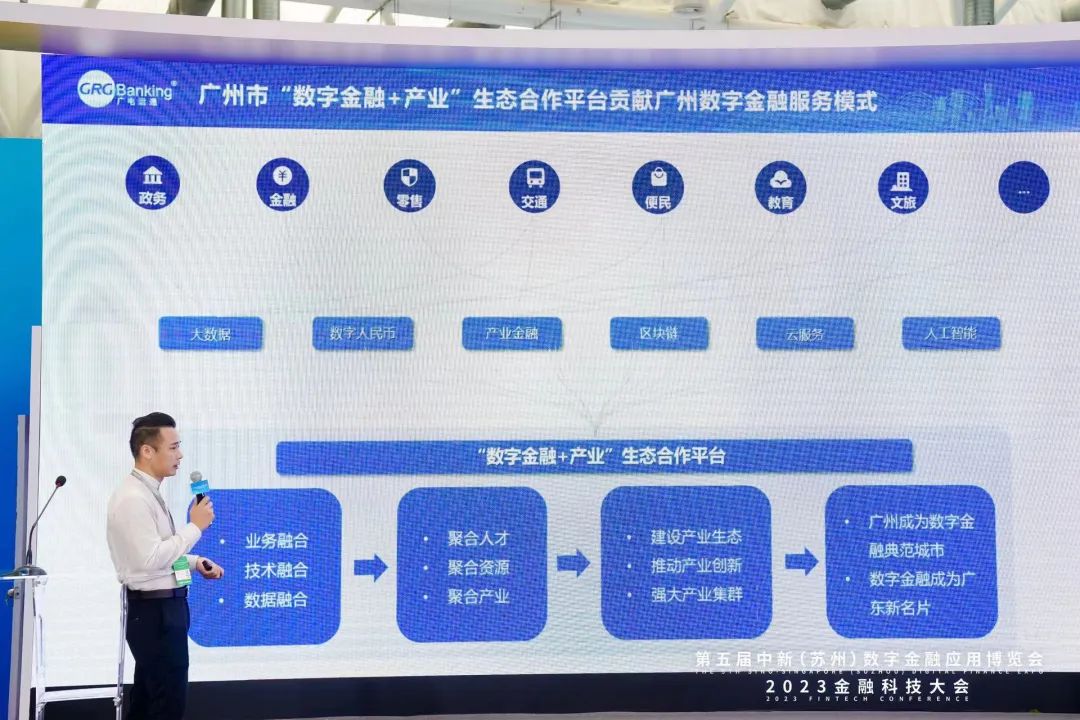 此外,在金融科技新技术、产品路演环节,广电运通受邀介绍了在数字人民币领域的全场景产品方案、生态布局以及相关的落地案例,重点介绍广州市以数字人民币为底座的“数字金融+产业”生态合作平台项目,分享通过公司技术实力的研发部署下打造的创新实践案例。