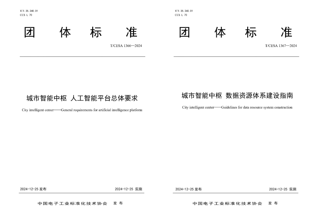 近日,由广电运通牵头制定的TCESA 1366-2024《城市智能中枢人工智能平台总体要求》和TCESA 1367-2024《城市智能中枢数据资源体系建设指南》两项团体标准正式发布。
