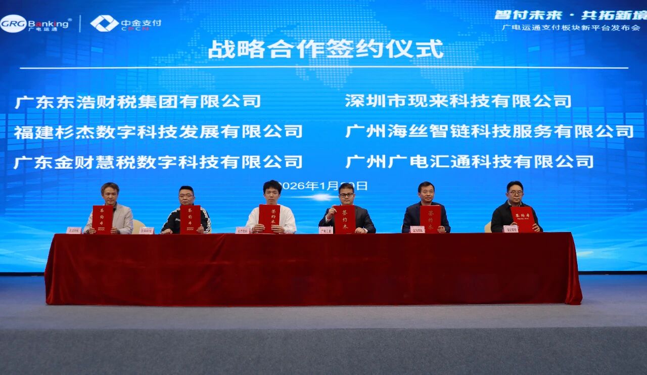 发布会上,广电运通与渤海银行广州分行、浦发银行广州分行、广东东浩财税集团有限公司、广州海思智链科技服务有限公司、福建杉杰数字科技发展有限公司、深圳市现来科技有限公司等十余家机构现场签署战略合作协议,共同构建“境内+跨境”双轮驱动的支付服务生态。