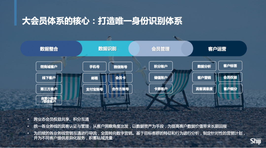 作为园区进行私域运营的基础,依托业务平台实现的“大会员”能够帮助企业构建统一的会员体系,打造唯一识别身份识别,在大营销的基础上实现跨业态会员权益共享和积分互通,并为不同客户提供差异化服务,提升二次消费占比。