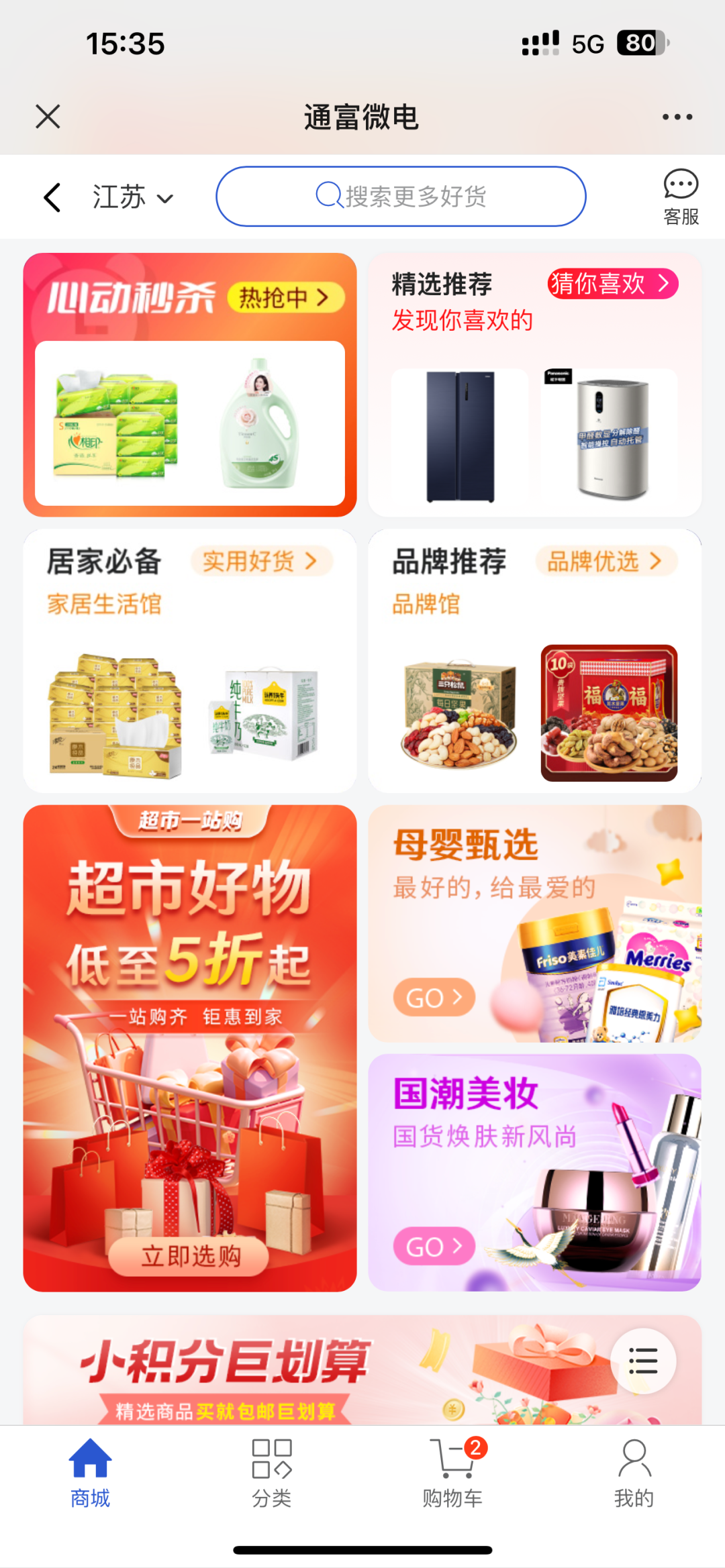 涵盖:电器、食品、日用品、母婴用品、休闲礼品等近20万款商品