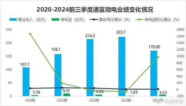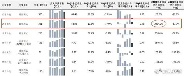 很多人之所以对该企业的名字、业务知之甚少,一方面是在多年前,人们对半导体、芯片领域的知识认知有限,或者说不是业内人士,也没必要做这些功课;另外一方面,由于前几年的市场低谷,尤其是消费电子类市场处于低迷的周期,通富微电的业绩、股价等综合表现差强人意,直到近一年才逐步恢复,上升到一个新的空间发展中。它在2024年前三季度净利润达到5.53亿元,同比增长968%;最亮眼的莫过于第一季度同比增速2064%,大大超出了市场预期,让人刮目相看。