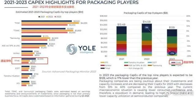 除了对大尺寸多芯片Chiplet封装进行技术升级,5nm制程产品投入生产,还基于玻璃基板布局了FCBGA芯片封装技术,打造差异化优势,进而成为国内市场占有率最高的公司。从2021年-2023年的3年间,通富微电在封装领域的投入排名第一、全球第三,技术和资本在封装领域有目共睹。