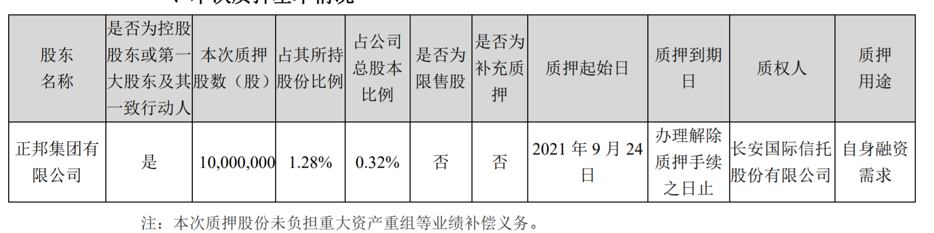 公告显示,正邦科技于2021年9月26日接到控股股东正邦集团有限公司(以下简称“正邦集团”)的通知,获悉其将所持有正邦科技的部分股权办理了质押手续,具体情况如下: