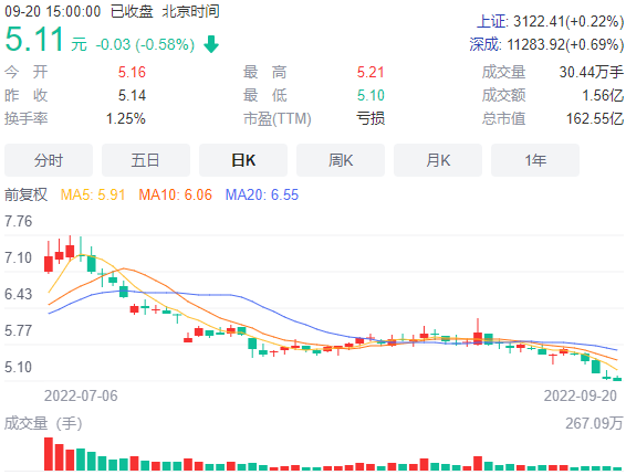 9月20日,正邦科技报收5.11元,股价创今年年初以来新低。