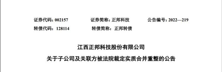▍正邦科9家子公司被法院裁定实质合并重整