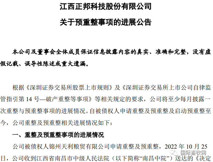 这两天,正邦科技动作不断:与江西国企签10亿元协议、预重整已收到11家意向投资人报名。新动向令人眼前一亮。