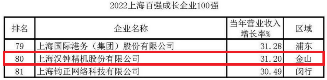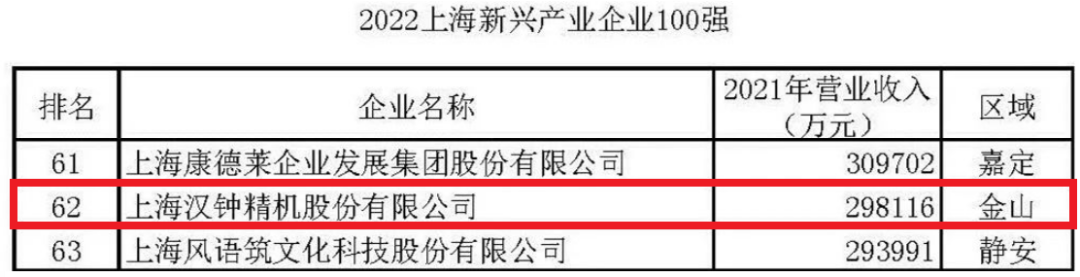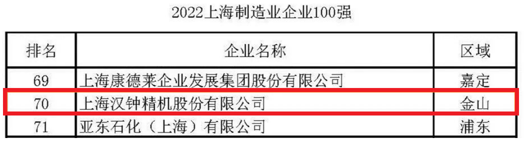 汉钟精机荣膺2022年“上海制造业企业100强”、“上海新兴产业企业100强”、“上海百强成长企业”称号。