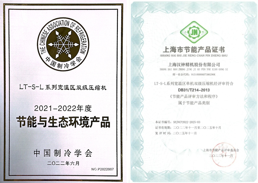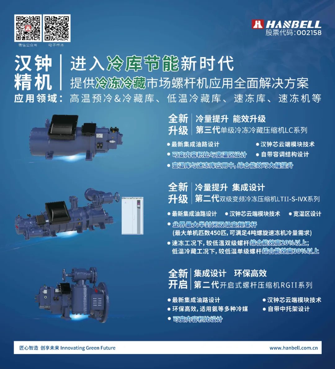 在市场上单级压缩机是冷库市场的主流产品,全世界各国也都是以单级压缩机为主。但是在冷冻库应用中,单级压缩机与双级相比,性能上确实存在明显的差距。常规双级压缩机因为运行范围限制,蒸发温度上限往往在-30℃左右,所以无法应用于冷冻库中,汉钟精机通过技术优化,突破了这个限制,将双级压缩机的蒸发温度上限提高至-10℃,推出了宽温区双级压缩机。在冷冻库应用场景中, LT-S-L系列产品较市场常规低温单级螺杆机综合能效提高20%~30%。对于冷冻库而言,压缩机耗电量占冷冻库总耗电量的85%~90%左右,所以这20%~30%能效的提升,对甲方用户而言非常有价值。此产品前后分别获得了“2021-2022年度中国制冷学会节能与生态环境产品”和“上海市节能产品”称号,该高效技术符合我国双碳政策的发展趋势,也受到了市场的欢迎。