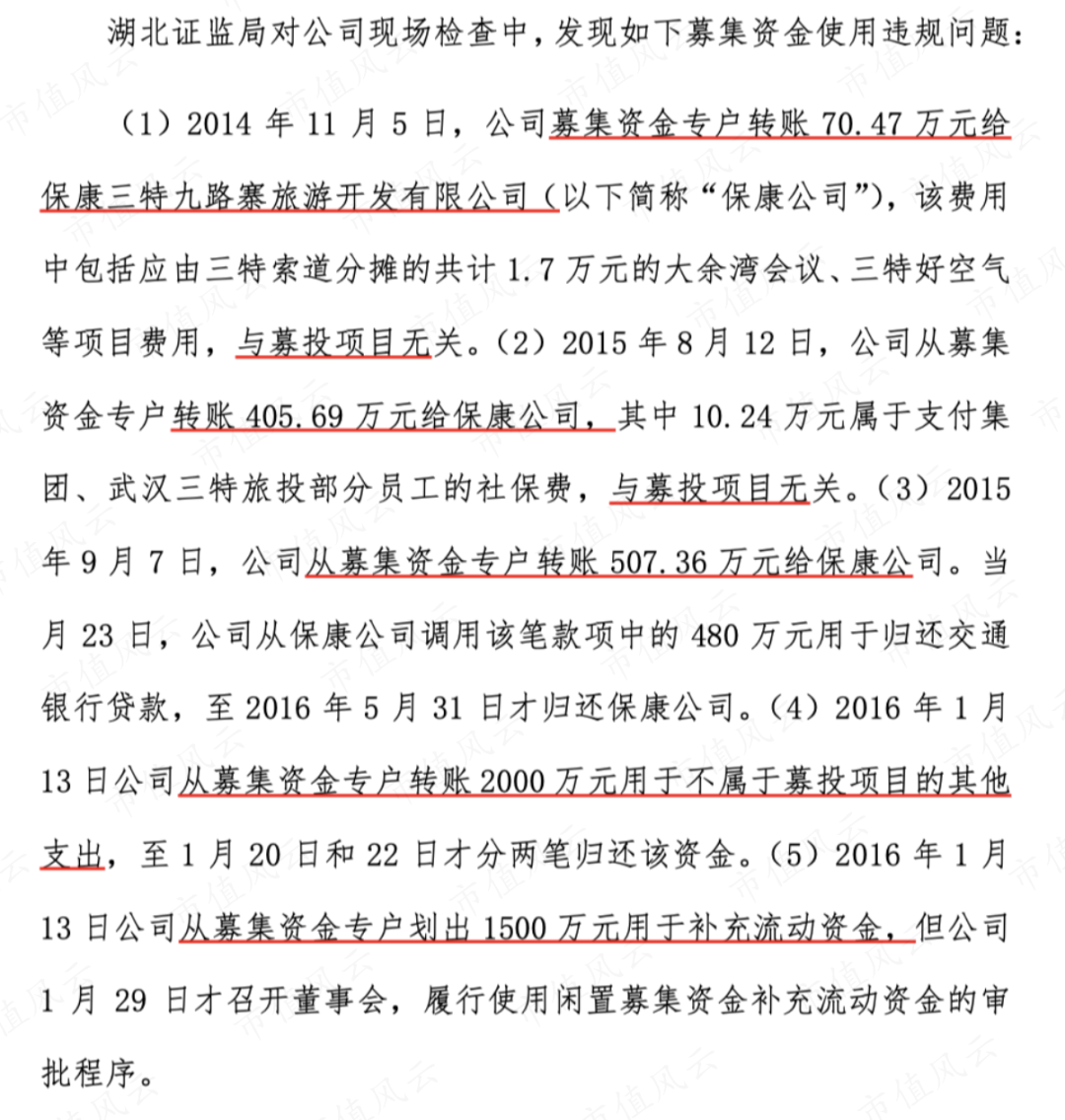 以三特索道为例,多次被监管部门处罚的违规情况和查出的问题: