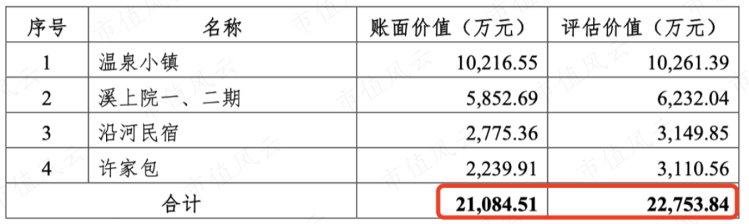 部分资产包括温泉小镇、溪上院、沿河民宿、许家包等对应的土地使用权、项目开发权、地上建筑物和在建工程。
