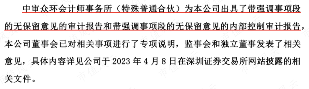 2022年年报,会计事务所也对三特索道的审计报告和内控审计报告出具了强调事项段的无保留意见。