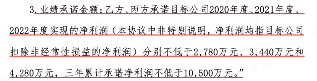 承诺业绩是2020年-2022年净利润分别不低于2780万、3440万、4280万。