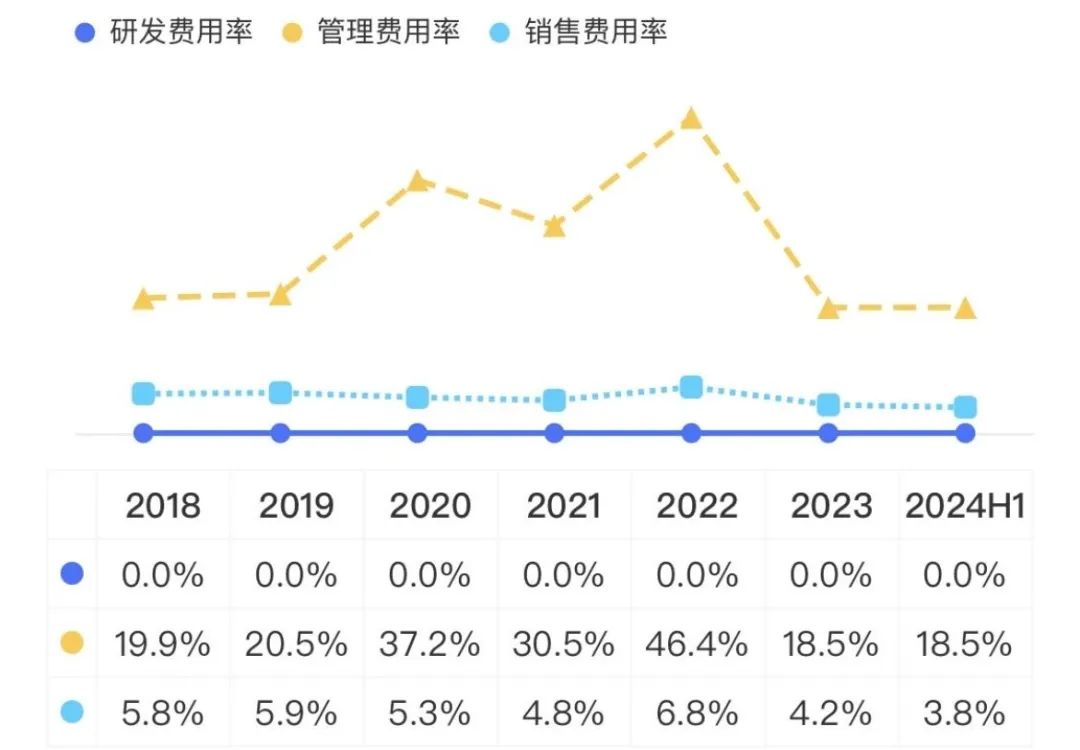 2023年以来,公司不断降本增效。今年上半年销售费用率、管理费用率是2018年以来最低水平,具体分别为18.5%、3.8%。