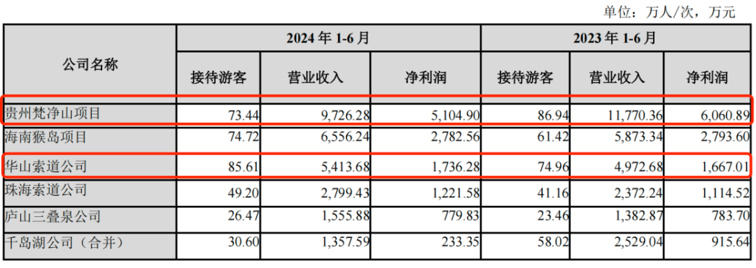 尤其是素有“亚洲第一索”之称的陕西华山索道和带领游客“漫步云端”的贵州梵净山索道,知名度高,今年上半年以及上年同期这两大景点贡献净利润占公司所有盈利项目净利润的近6成。
