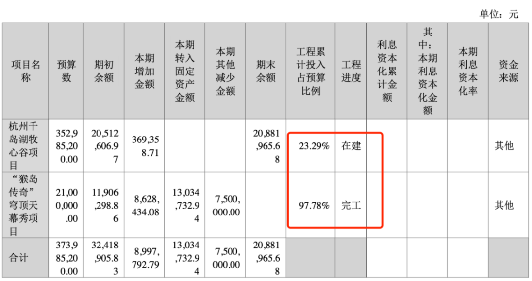 在项目储备上,预算3.5亿的杭州千岛湖牧心谷项目已开工建设,截止今年上半年,进度23%。