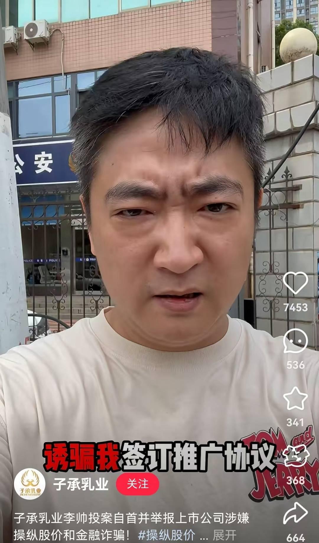 近日,湖南子承乳业董事长李帅社交平台发视频,实名举报上市公司莱茵生物实际控制人秦本军诱骗其签署推广协议,助其操纵股价,并获得金融机构5亿元的融资。视频发出后引发大量关注,不少网友在评论区提到“太子奶商战”。