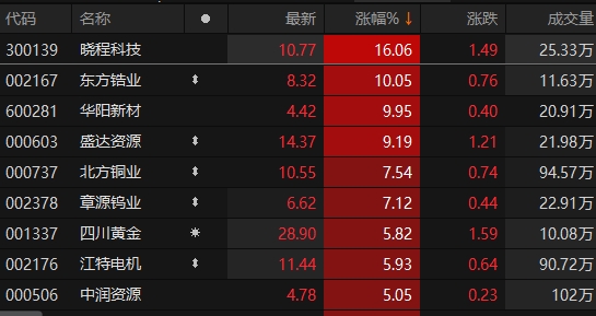 4月3日早盘,申万一级行业板块中,有色金属板块震荡上行。截至9时44分,东方锆业、华阳新材涨停。晓程科技涨超16%,盛达资源涨逾9%,北方铜业、四川黄金等跟涨。
