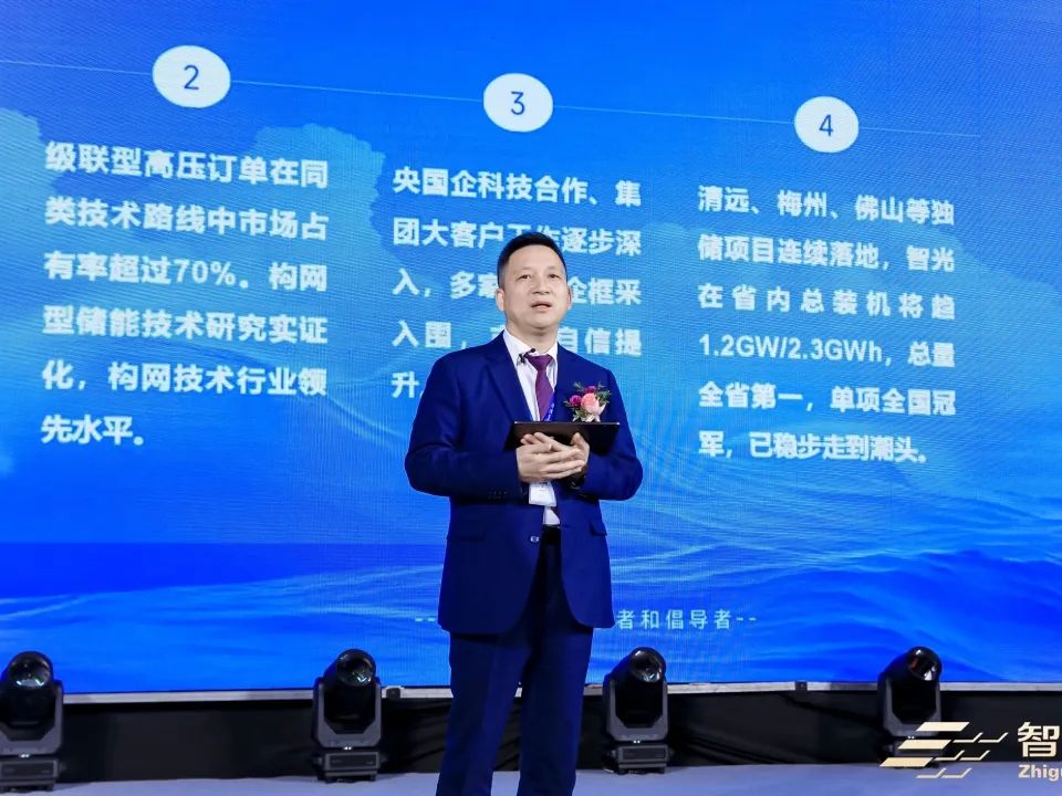 智光电气总裁姜新宇对2024年工作进行了系统性总结,他表示,过去一年公司经营管理提质增效,各项事业建设全面发展,单站储能项目总装机量领跑全省,海外市场勇拓新程,是勠力同心造就每一个突破时刻。