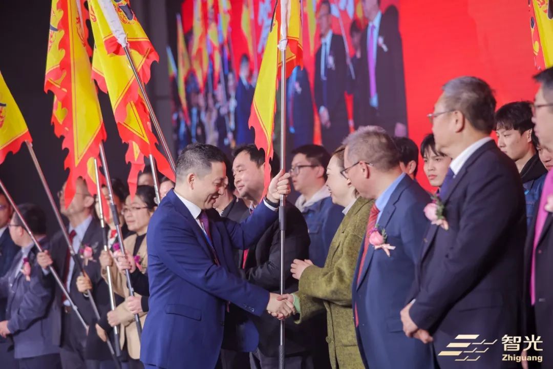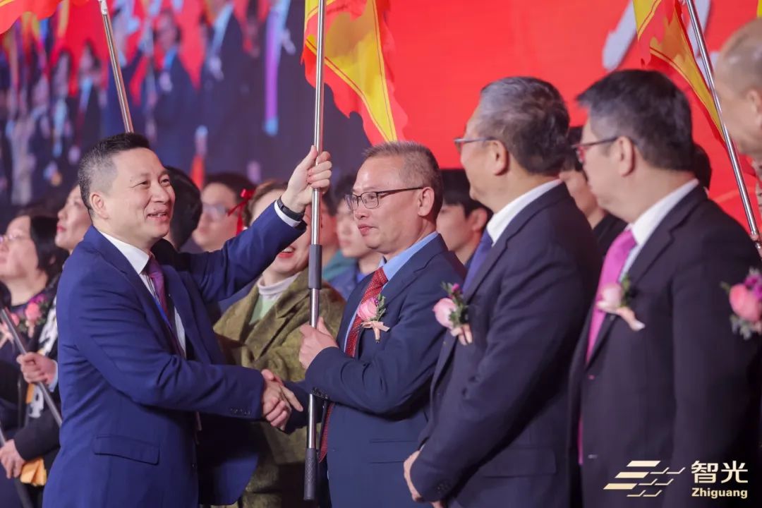 随着浑厚激昂战鼓声响起,帅旗和十八面令旗从会场中央向舞台迅速汇聚,在两千多名智光人的见证下,帅旗与令旗在公司经营班子和各级领导间完成了庄严的授予,这是目标与责任的传递,也是向新一年挑战发起的必胜决心和行动承诺。