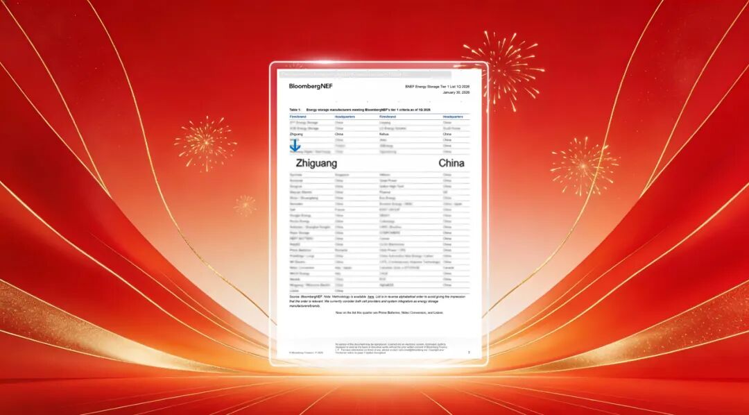 1月30日,彭博新能源财经(BNEF)发布2026年第一季度全球储能制造商Tier 1榜单,广州智光电气股份有限公司(以下简称“智光电气”)凭借扎实的技术积累与持续增长的海外项目业绩,再次成功入选,国际化品牌影响力稳步提升。